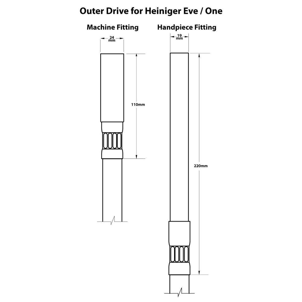 Takes 19mm internal diameter flexi ferrule at handpiece end.